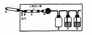 (5) 若保留上图中黑色粗线框内的装置但去掉通空气的导管B,将C装置中的双孔橡皮 塞换成单孔橡皮塞,请你用图示的方法设计一个简单的实验方案同样完成硝酸的制取(在下图方框中画出装置图,并注明所用的试剂)。