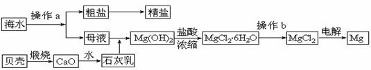 ②操作b是在 氛围中进行,若在空气中加热,则会生成Mg(OH)Cl,写出有关反应的化学方程式: 。