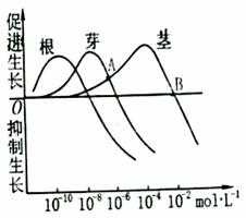 (3)A点所对应的生长素浓度对茎生长的效应是 ,对芽生长的效应是 。