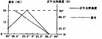 A点的正午太阳高度是 。北极点的太阳高度是 。