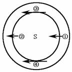 9、读下图,四个平行箭头中指向东方的是
