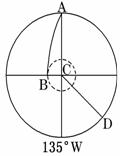 C、东经1650,北纬170 D、经度00,北纬260