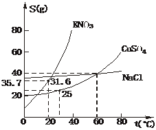 C.60℃时,200 g水中溶解80 g CuSO4达饱和,当降温至30℃时,可析出30 g硫酸铜晶体