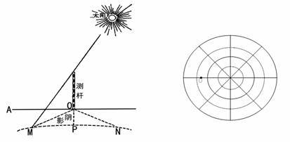 沈阳市某中学地理研究性学习小组在O地点进行太阳高度角的测定。左图是其观测示意图,MN弧是测杆阴影端点的连线。读图完成下列问题。(16分)