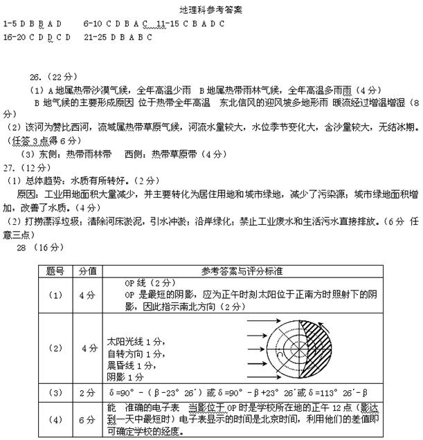 (2)若阴影OP的长度正好为一年中的最小值,此时测得太阳高度角为β。请在右图中绘制此时刻太阳照射地球示意图(画出晨昏线,用阴影表示黑夜,用箭头标出地球自转的方向和太阳光线)。(4分)