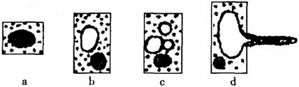 35.利用电子显微镜观察试样甲、乙、丙的细胞结构,观察到细胞结构a~e具有下列特征:a、b、c均由双层膜构成,其中a的膜上具有小孔,而b、c没有小孔;细胞分裂时,从d的周围发出丝状物;e由几个囊状结构重叠而成。将试样甲、乙、丙的细胞结构有无作表如下(+:存在;-:不存在)。由此判断,试样甲、乙、丙分别是