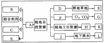 37.(22分)读下面自然资源之间的关系图,回答下列问题。