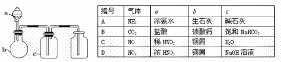 下图中a、b、c表示相应仪器中加入的试剂,可用下图装置制取、净化、收集的气体是( )