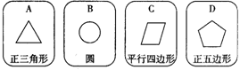 2.有四张背面相同的纸牌A,B,C,D,其正面分别画有四个不同的几何图形(如图),小华将这4张牌背面朝上洗匀后,摸出一张,放回洗匀后再摸一张.
