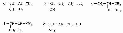 其中φ代表苯基。苯丙醇胺是一种一取代苯,取代基是: