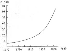 [解析]此题考查的是对英国工业革命的理解。第一问根据图示直接概括即可;第二问可以根据材料和所学知识:从工业革命发展的不同阶段能源的变化需求作答(木材等传统能源--煤)。