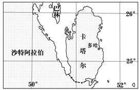 当地时间(区时)2006年12月1日19时,第15届亚运会开幕式在卡塔尔首都多哈举行。读图回答1-2题。