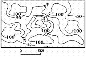 7.读某地等高线地形图回答,图中P-Q两地间有一座桥梁,该桥和其下溪谷的高差最接近