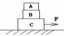 如图所示,A、B、C三个矩形物体叠放在水平面上,用水平力F拉物体C,它们仍保持静止状态,则C物体受力的个数为: