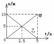 D、经过5s的时间,甲物体到达乙物体的出发点