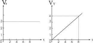 例题3、质量M=2kg的物体在光滑的平面上运动,其分速度Vx和Vy随时间变化的图线如图所示,求: