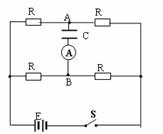 5.(06年南京)所示电路中,电源电动势E=10V,内阻r=1Ω,电容器电容C=40μF,电阻R1=R2=4Ω,R3=5Ω。接通电键S,待电路稳定后,求: