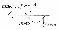 用此法判断时,须取正半周或负半周波形,以取正半周为例,由于峰点不振动,而两侧的质点振动反向,要求表示传播方向的箭头要与峰点相切,于是表示质点振动方向的箭头与表示波传播方向的箭头间必有:“箭头跟箭头相对”或“箭尾跟箭尾相对”的关系,负半周同理。为便于记忆,可简记为“头头相对”或“尾尾相对”。