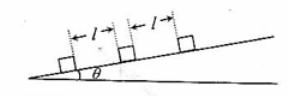 l (09年全国卷Ⅰ)25.(18分) 如图所示,倾角为θ的斜面上静止放置三个质量均为m的木箱,相邻两木箱的距离均为l。工人用沿斜面的力推最下面的木箱使之上滑,逐一与其它木箱碰撞。每次碰撞后木箱都粘在一起运动。整个过程中工人的推力不变,最后恰好能推着三个木箱匀速上滑。已知木箱与斜面间的动摩擦因数为μ,重力加速度为g.设碰撞时间极短,求