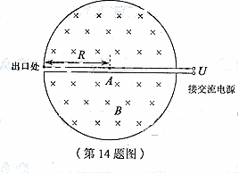 14.(09年江苏卷)(16分)1932年,劳伦斯和利文斯设计出了回旋加速器。回旋加速器的工作原理如图所示,置于高真空中的D形金属盒半径为R,两盒间的狭缝很小,带电粒子穿过的时间可以忽略不计。磁感应强度为B的匀强磁场与盒面垂直。A处粒子源产生的粒子,质量为m、电荷量为+q ,在加速器中被加速,加速电压为U。加速过程中不考虑相对论效应和重力作用。