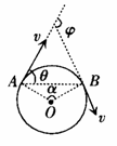 点评:带电粒子在匀强磁场中做匀速圆周运动时,几何关系的作用有时是解题的关键.半径相等的圆相交时,在两相交点作不同圆的切线,如图所示.AC是圆O1的切线,BD是圆O2的切线,则AC一定平行于BD.
