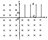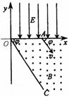 [08宁夏]如图所示,在xOy平面的第一象限有一匀强电场,电场的方向平行于y轴向下;在x轴和第四象限的射线OC之间有一匀强磁场,磁感应强度的大小为B,方向垂直于纸面向外。有一质量为m,带有电荷量+q的质点由电场左侧平行于x轴射入电场。质点到达x轴上A点时,速度方向与x轴的夹角