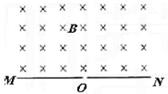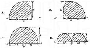 [05全国卷I]如图,在一水平放置的平板MN的上方有匀强磁场,磁感应强度的大小为B,磁场方向垂直于纸面向里。许多质量为m带电量为+q的粒子,以相同的速率v沿位于纸面内的各个方向由小孔O射入磁场区域。不计重力,不计粒子间的相互影响。下列图中阴影部分表示带电粒子可能经过的区域,其中