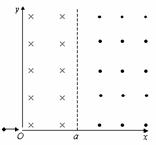 [07全国卷I]两平面荧光屏互相垂直放置,在两屏内分别取垂直于两屏交线的直线为x轴和y轴,交点O为原点,如图所示,在y>0,0<x<a的区域有垂直于纸面向里的匀强磁场,在y>0,x>a的区域有垂直于纸面向外的匀强磁场,两区域内的磁感应强度大小均为B。在O点有一处小孔,一束质量为m、带电量为q(q>0)的粒子沿x轴经小孔射入磁场,最后打在竖直和水平荧光屏上,使荧光屏发亮。入射粒子的速度可取从零到某一最大值之间的各种数值。已知速度最大的粒子在0<x<a的区域中运动的时间与在x>a的区域中运动的时间之比为2∶5,在磁场中运动的总时间为7T/12,其中T为该粒子在磁感应强度为B的匀强磁场中作圆周运动的周期。试求两个荧光屏上亮线的范围(不计重力的影响)。