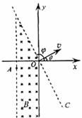 [08全国卷I]如图所示,在坐标系xoy中,过原点的直线OC与x轴正向的夹角φ=120°,在OC右侧有一匀强电场;在第二、三象限内有一匀强磁场,其上边界与电场边界重叠、右边界为y轴、左边界为图中平行于y轴的虚线,磁场的磁感应强度大小为B,方向垂直抵面向里。一带正电荷q、质量为m的粒子以某一速度自磁场左边界上的A点射入磁场区域,并从O点射出,粒子射出磁场的速度方向与x轴的夹角θ=30°,大小为v,粒子在磁场中的运动轨迹为纸面内的一段圆弧,且弧的半径为磁场左右边界间距的两倍。粒子进入电场后,在电场力的作用下又由O点返回磁场区域,经过一段时间后再次离开磁场。已知粒子从A点射入到第二次离开磁场所用的时间恰好等于粒子在磁场中做圆周运动的周期。忽略重力的影响。求