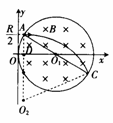 平面向里,该区域的圆心O1的坐标为(R,0),如图所示.有一个质量为m、带电荷量为