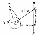 [07省质检(改动)]如图所示为电视机中显像管的原理示意图,电子枪中的灯丝因加热而逸出电子,这些电子再经加速电场加速后,从O点进入由磁偏转线圈产生的圆形匀强磁场区域中,经过偏转磁场后打到荧光屏MN上,使荧光屏发出荧光形成图像。磁场方向垂直于圆面,磁场区域的中心为O’,半径为