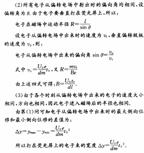 (3)在满足第(2)问的情况下,打在荧光屏上的电子束的宽度为多少?(已知电子的质量为m,电荷量为