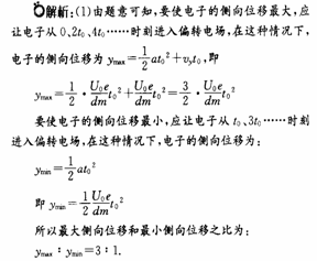 (1)电子在刚穿出两板之间时沿垂直于板面方向偏移的最大距离与最小距离之比为多少?