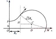 [08海南]如图,空间存在匀强电场和匀强磁场,电场方向为y轴正方向,磁场方向垂直于xy平面(纸面)向外,电场和磁场都可以随意加上或撤除,重新加上的电场或磁场与撤除前的一样。一带正电荷的粒子从P(x=0,y=h)点以一定的速度平行于x轴正向入射。这时若只有磁场,粒子将做半径为R0的圆周运动:若同时存在电场和磁场,粒子恰好做直线运动。现在,只加电场,当粒子从P点运动到x=R0平面(图中虚线所示)时,立即撤除电场同时加上磁场,粒子继续运动,其轨迹与x轴交于M点,不计重力。求: