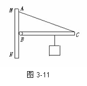 (★★★★)如图3-11所示,长为l的均匀横杆BC重为100 N,B端用铰链与竖直的板MN连接,在离B点