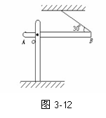 (★★★★★)如图3-12所示,均匀木板AB长12 m,重200 N,在距A端3 m处有一固定转动轴O,B端被绳拴住,绳与AB的夹角为30°,板AB水平.已知绳能承受的最大拉力为200 N,那么重为600 N的人在该板上安全行走,离A端的距离应在什么范围?