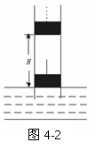 3.(★★★★★)如图4-2所示,若在湖水里固定一细长圆管,管内有一活塞,它的下端位于水面上,活塞的底面积S=1 cm2,质量不计.大气压强p0=1.0×105 Pa.现把活塞缓慢地提高H=15 m,则拉力对活塞做的功为_______ J.(g=10 m/s2)