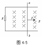 [例2](★★★★★) 如图4-5所示,置于水平面的平行金属导轨不光滑,导轨一端连接电阻R,其他电阻不计,垂直于导轨平面有一匀强磁场,磁感应强度为B,当一质量为m的金属棒ab在水平恒力F作用下由静止向右滑动时