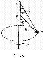 [解析]如图3-1所示,当BC刚好被拉直,但其拉力T2恰为零,设此时角速度为ω1,AC绳上拉力设为T1,对小球有:
