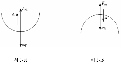 [解析]当汽车经过凹形路面最低点时,设路面支持力为FN1,受力情况如图3-18所示,由牛顿第二定律,