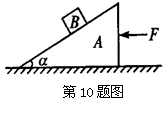 10、(苴镇中学)如图所示,在水平面上有一个质量为M的楔形木块A,其斜面倾角为α,一质量为m的木块B放在A的斜面上.现对A施以水平推力F,恰使B与A不发生相对滑动.忽略一切摩擦,则B对A的压力大小为 ( )