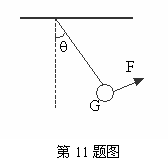 11、(苴镇中学)如图所示,用轻绳吊一个重为G的小球,欲施一力F使小球在图示位置平衡(θ<30°), 下列说法正确的是