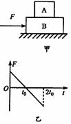 12.如下图甲所示,A、B两物体叠放在光滑水平面上,对物体B施加一水平变力F,F-t关系如图乙所示,两物体在变力作用下由静止开始运动且始终保持相对静止,则( )