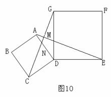3.(2008 湖南 怀化)如图10,四边形ABCD、DEFG都是正方形,连接AE、CG,AE与CG相交于点M,CG与AD相交于点N.