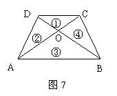 15.(2008湖南常德市)如图7,在梯形ABCD中,若AB//DC,AD=BC,对角线BD、AC把梯形分成了四个小三角形.