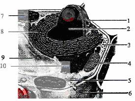 (3)1、2,5 (1分) (4)4、57('分) (5)6、7,9 中心体 3,8、10(每格1分)