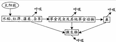 (4)画出稻一萍一鱼生态系统的能量流动图(不考虑与人的联系)。