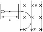 4.如图已知一质量为m的带电液滴,经电压U加速后水平进入互相垂直的匀强电场E和匀强磁场B中(E、B已知),液滴在此空间的竖直平面内做匀速圆周运动,则 ( C )