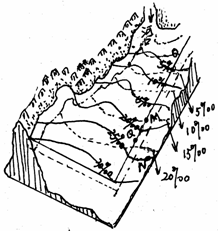 下图是某河流入海口处高潮和低潮的等盐度线图,读图回答7-8题。