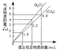 11.由两种气态烃组成的混合烃的总物质的量与该混合烃充分燃烧后所得气体产物(CO2和H2O蒸气)的物质的量之变化关系如图所示。以下对混合烃组成的判断正确的是 。